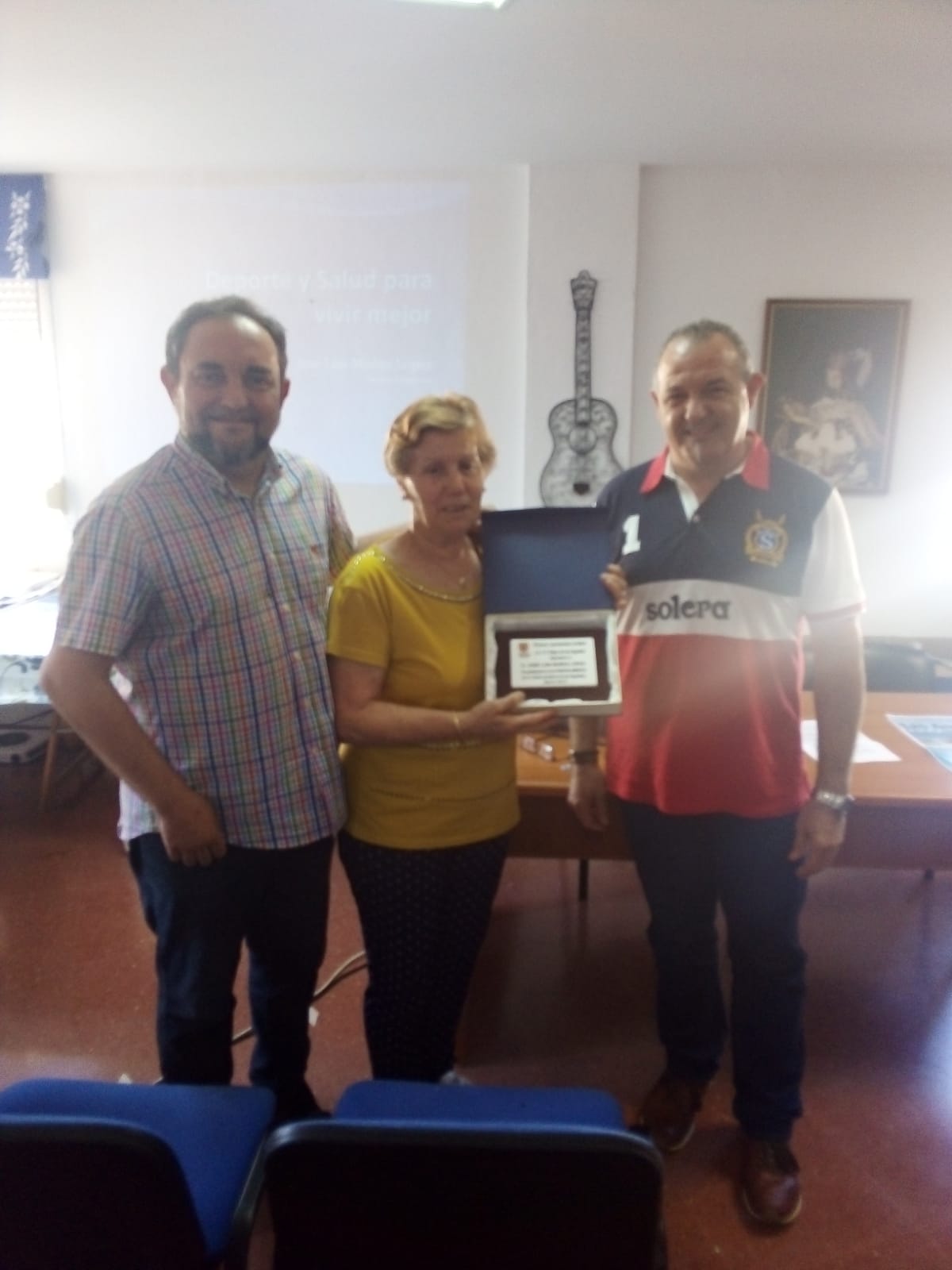 El concejal de Participación Ciudadana, Miguel Ángel Muñoz, ha resaltado la gran labor que realizan los vecinos de este emblemático barrio motrileño, a través de la asociación, con su presidenta María del Carmen Gálvez a la cabeza; ambos han entregado una placa en reconocimiento al trabajo y colaboración de José Luis Muñoz López, por ofrecer altruistamente una conferencia sobre la salud y el deporte en la primera jornada de Puertas Abiertas.