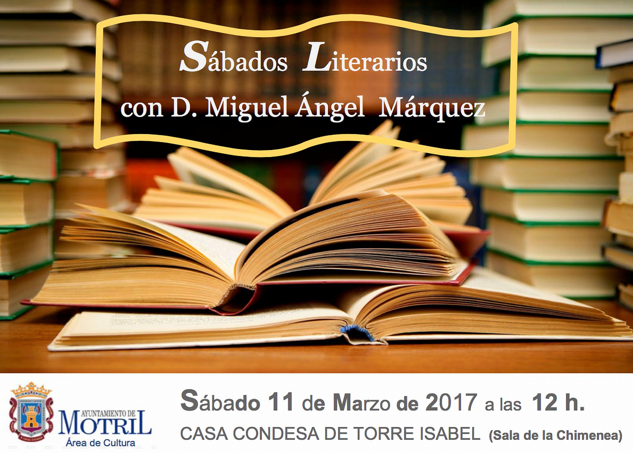 El catedrático de Teoría de la literatura en la Universidad de Huelva, poeta y traductor Miguel Ángel Márquez protagoniza este fin de semana una nueva edición de los Sábados Literarios de Motril. El concejal de Cultura, Francisco Ruiz, ha destacado que los amantes de las letras podrán disfrutar de un encuentro en el que podrán conocer al autor ganador de un premio de la Fundación Odón Betanzos en 1996 y traductor de obras como Las gnomai de Baquílides, 1992; de Arias Montano, el Tractatus de figuris rhetoricis cum exemplis ex sacra scriptura petitis, 1995, Dionisio de Halicarnaso. Sobre la composición literaria, 2001, Retórica y retrato poético, 2001 y Anáximenes de Lámpsaco: Retórica a Alejandro, 2005.